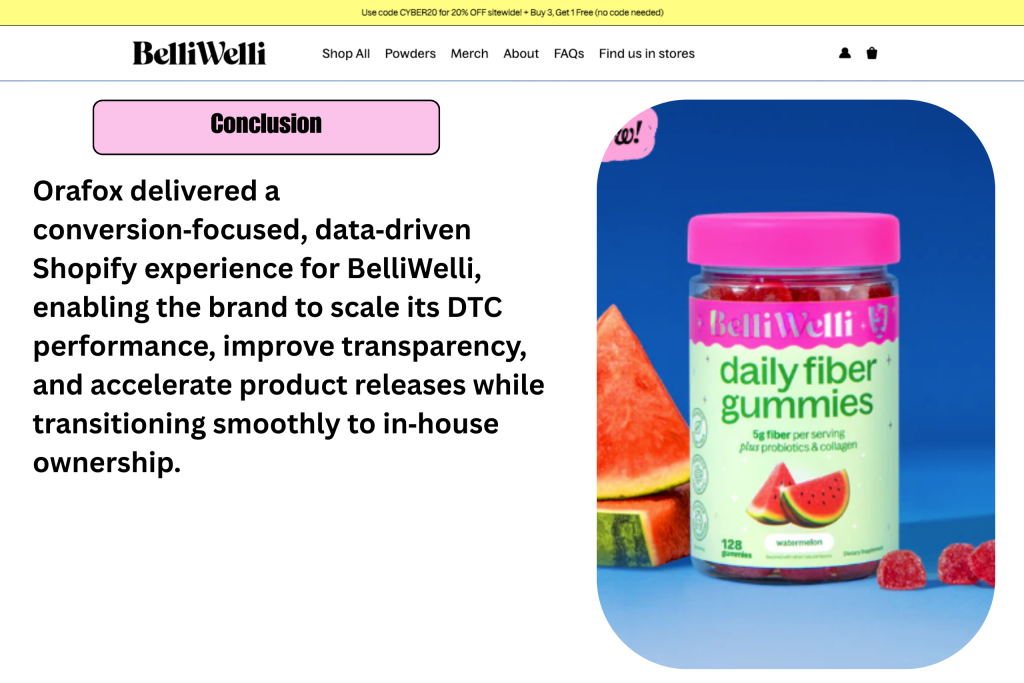 Orafox partnered with BelliWelli to modernize their digital infrastructure, enhance conversion opportunities, and streamline their internal workflow—ultimately enabling the brand to scale confidently while maintaining creative velocity.